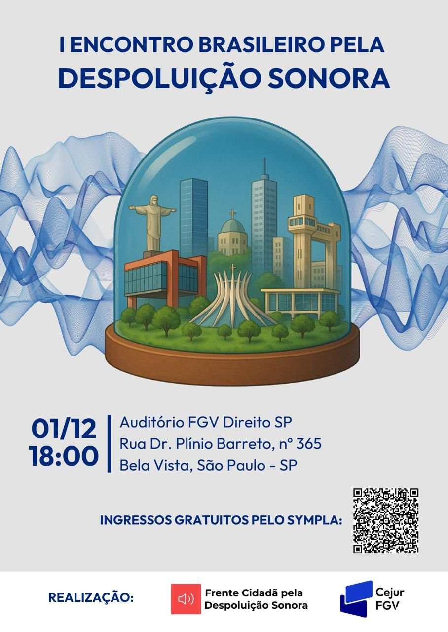A Frente Cidadã pela Despoluição Sonora e o Centro de Estudos Jurídicos Junior da FGV promoverão o I Encontro Brasileiro pela Despoluição Sonora, com o objetivo de reunir sociedade civil e autoridades para dialogar sobre a construção de uma política nacional de enfrentamento à poluição sonora. O evento lançará o documentário Onde o Som Ressoa, produzido pela Frente Cidadã, que reúne entrevistas com médicos e especialistas da saúde pública, abordando o impacto da poluição sonora na saúde humana. Em seguida, uma mesa debaterá caminhos para uma regulação mais eficaz e fiscalização mais eficiente para solucionar a crise de saúde pública que enfrentamos. Participe em 01/12/25 em São Paulo!