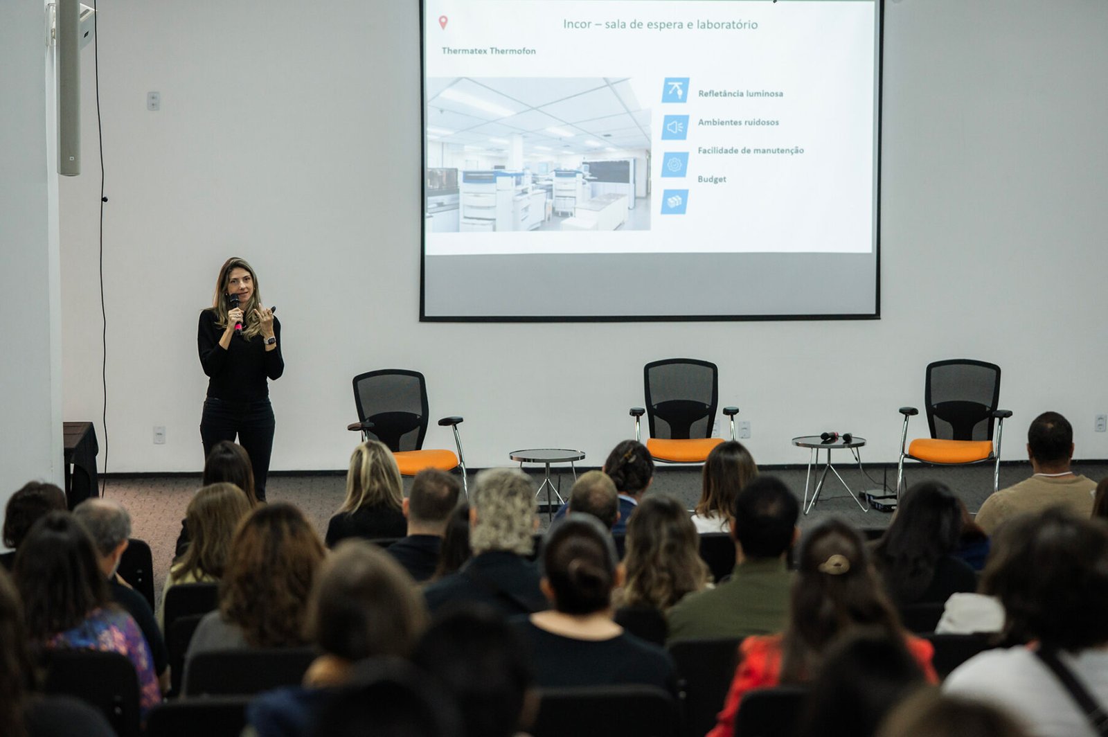 Paula Omizzolo, coordenadora de especificação da Knauf, que apresentou cases práticos de aplicação acústica em projetos durante o evento, afirmou que encontros como esses fortalecem o diálogo técnico e a troca de experiências. “Compartilhar informações com arquitetos, estudantes e engenheiros sobre esse tema tão relevante é de fundamental importância”